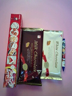 左から、クッキングシート、チョコ(普通のとホワイト)、