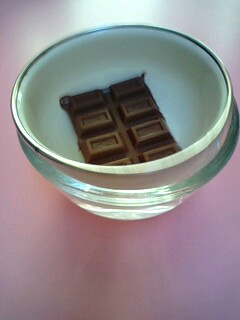 別の容器にチョコを割りいれて、お湯をはったボウルにつけて湯煎します。