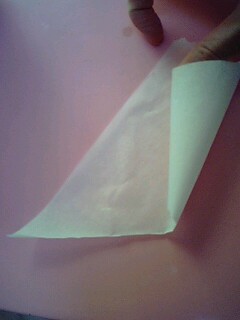適当に(20~30センチくらい?)クッキングシートを引き出して切り、適当に三角に切る。