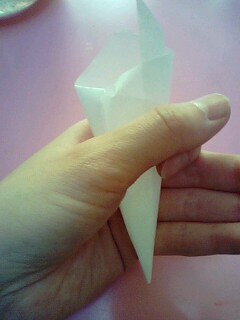 上に余ってる紙(三角形の角だったところだよ)を内側に織り込んで固定。