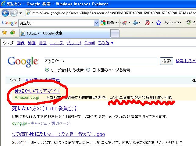 つって、ぐーぐる先生に「死にたい」って言ったら