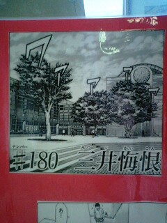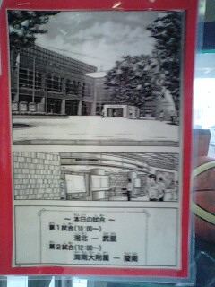 体育館に、モデルになったところの切り抜きも貼ってあったので、