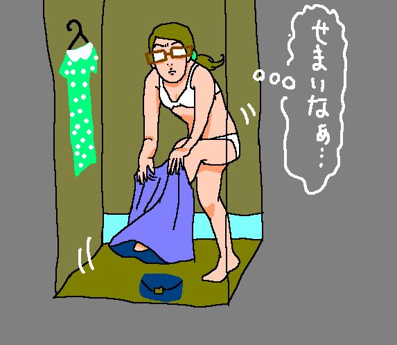 荷物置いたらいぱいいっぱいの、ホントに狭いような古い試着室でさー。