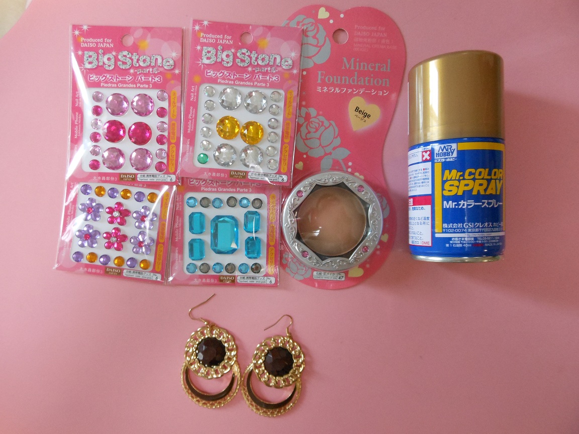 コンパクト部分と石 パーツは100円ショップで、
