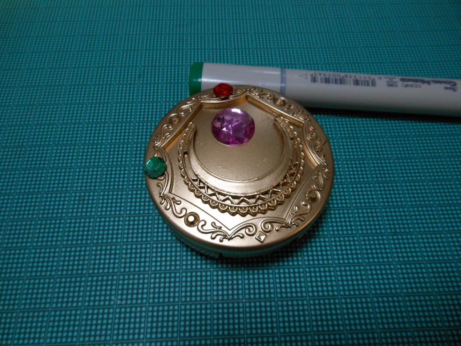 ジュピターの緑の石も無かったので、クリアパーツをコピックで塗って貼る。