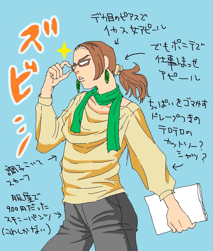 首には調子こいて「デキる女アピール」のスカーフ(仮面ライダーオマージュ)