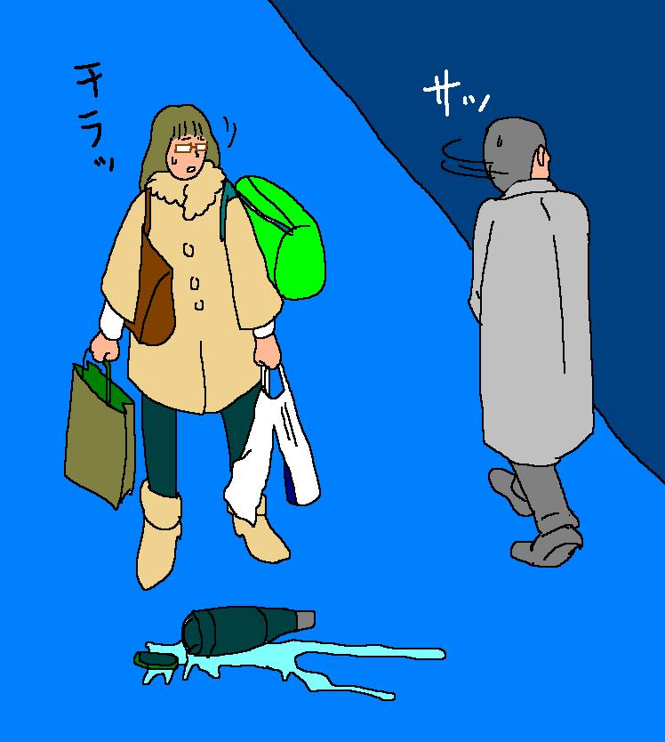 しかも割れた瓶入れてもいいような袋とかも何も持っていない状態 だったから、