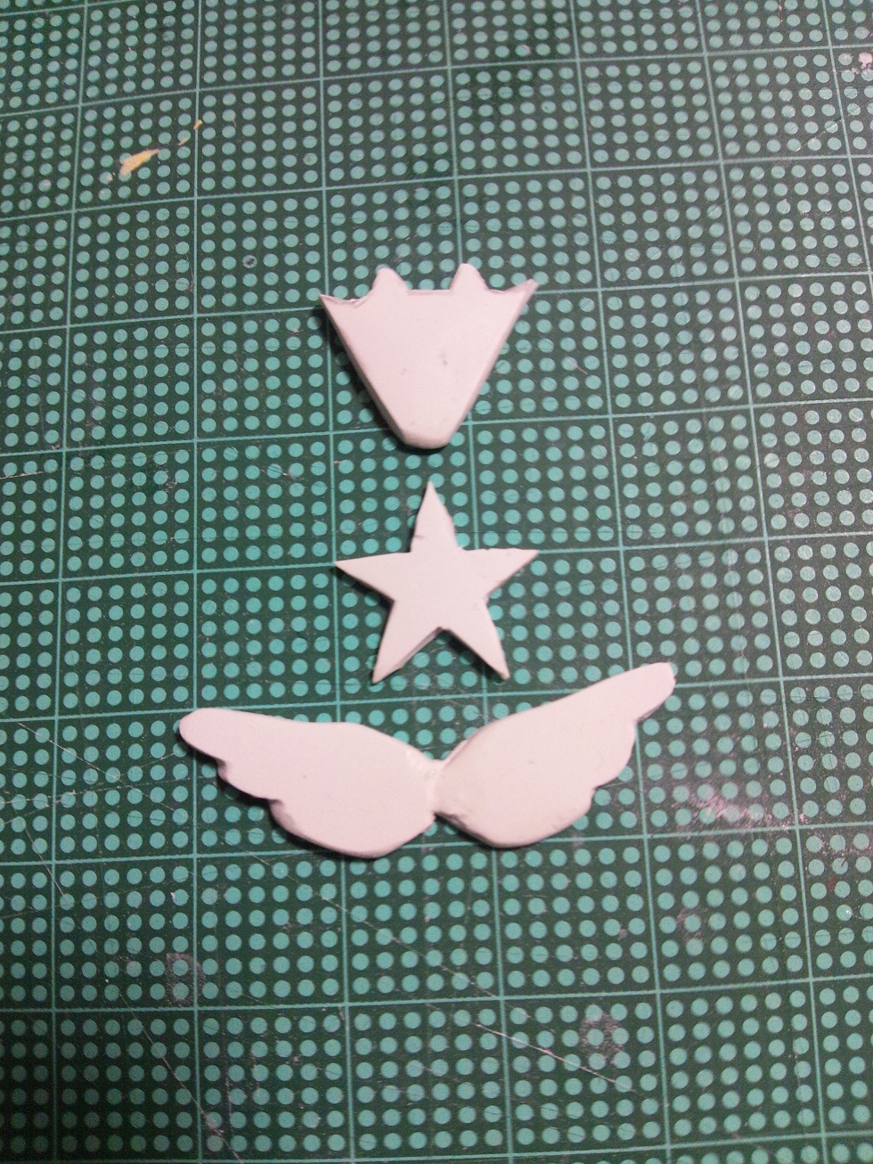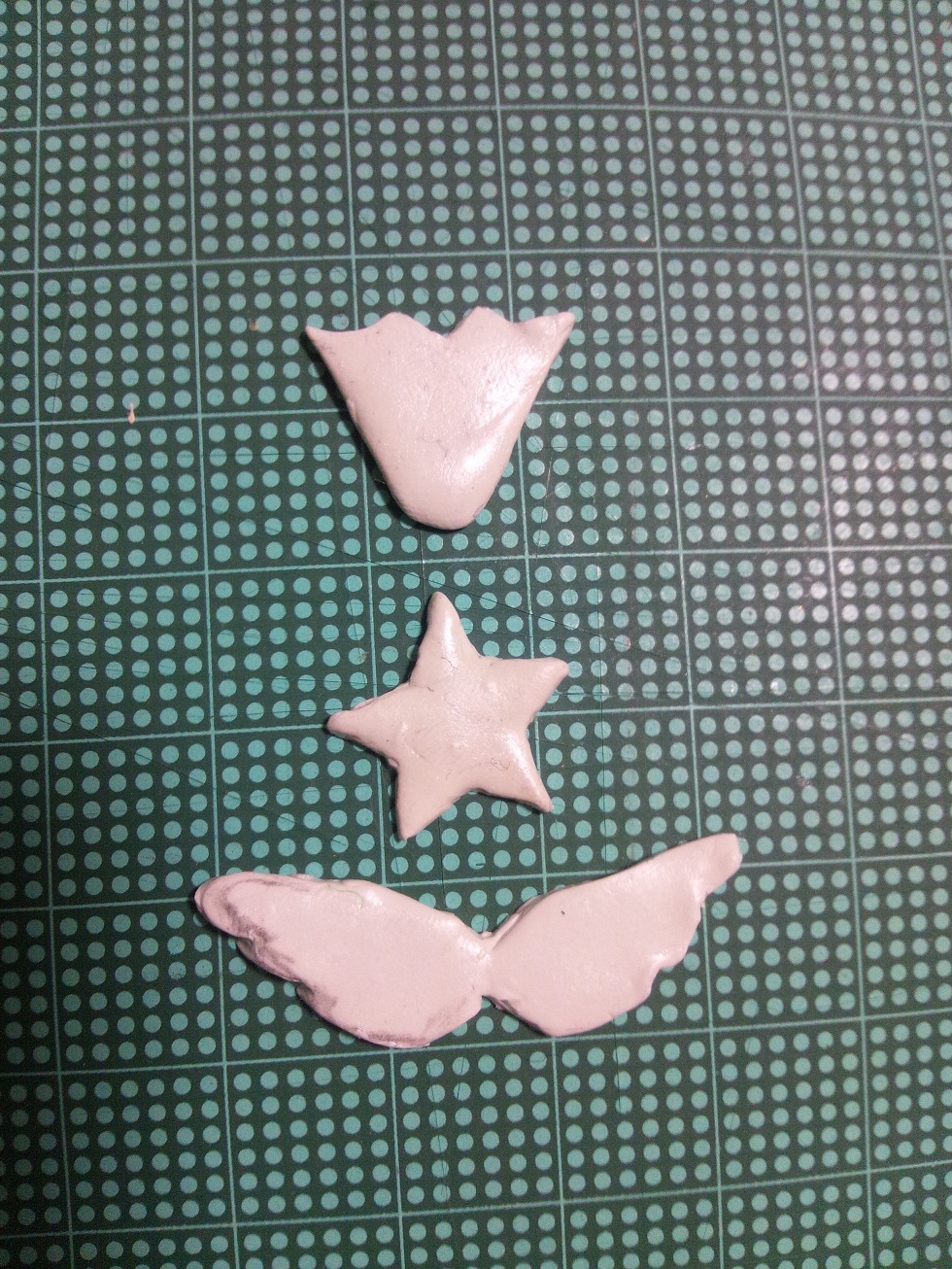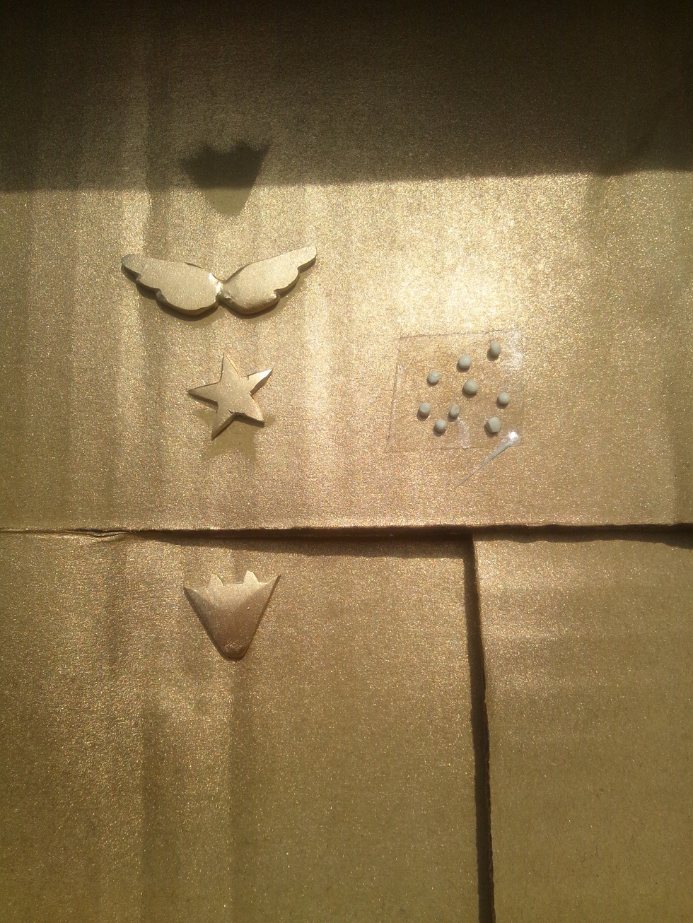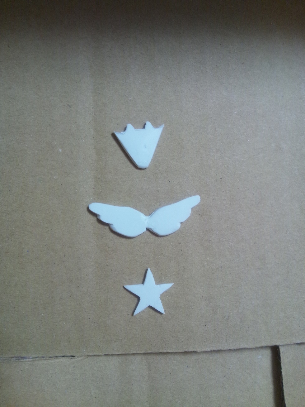 星のホログラムを、星のねんどに貼って、羽と王冠とをくっつけていく。