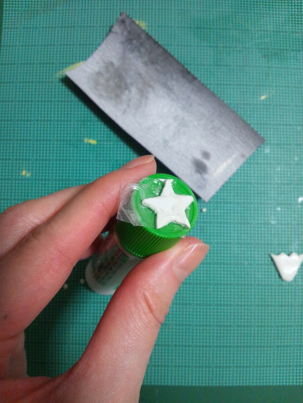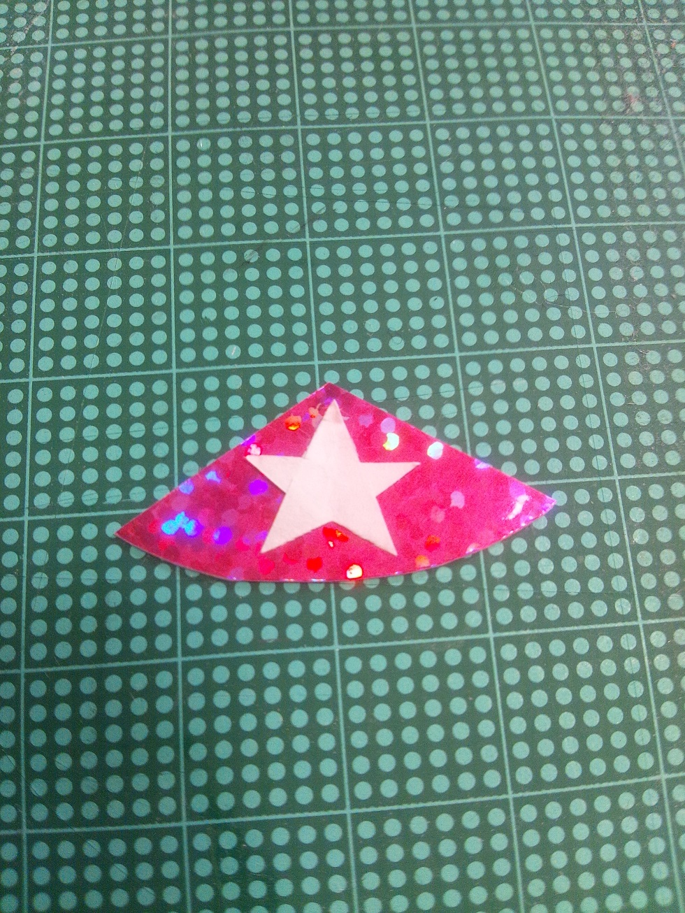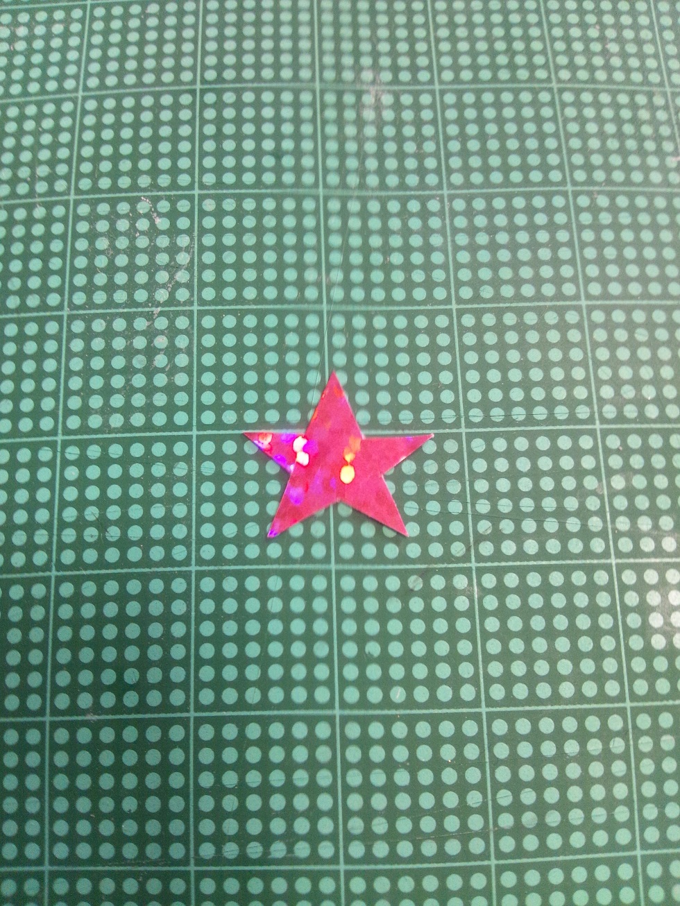 ホログラムの切れっ端に星型の紙を載せて