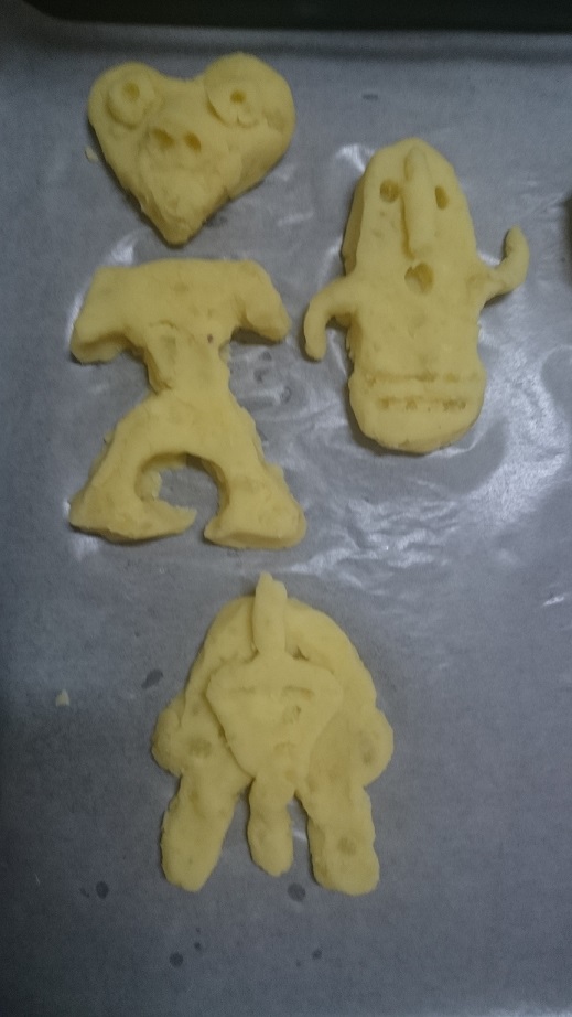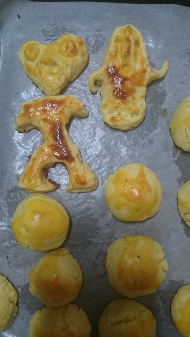 ⑤適当に丸めたり整形し、といた卵黄を塗る