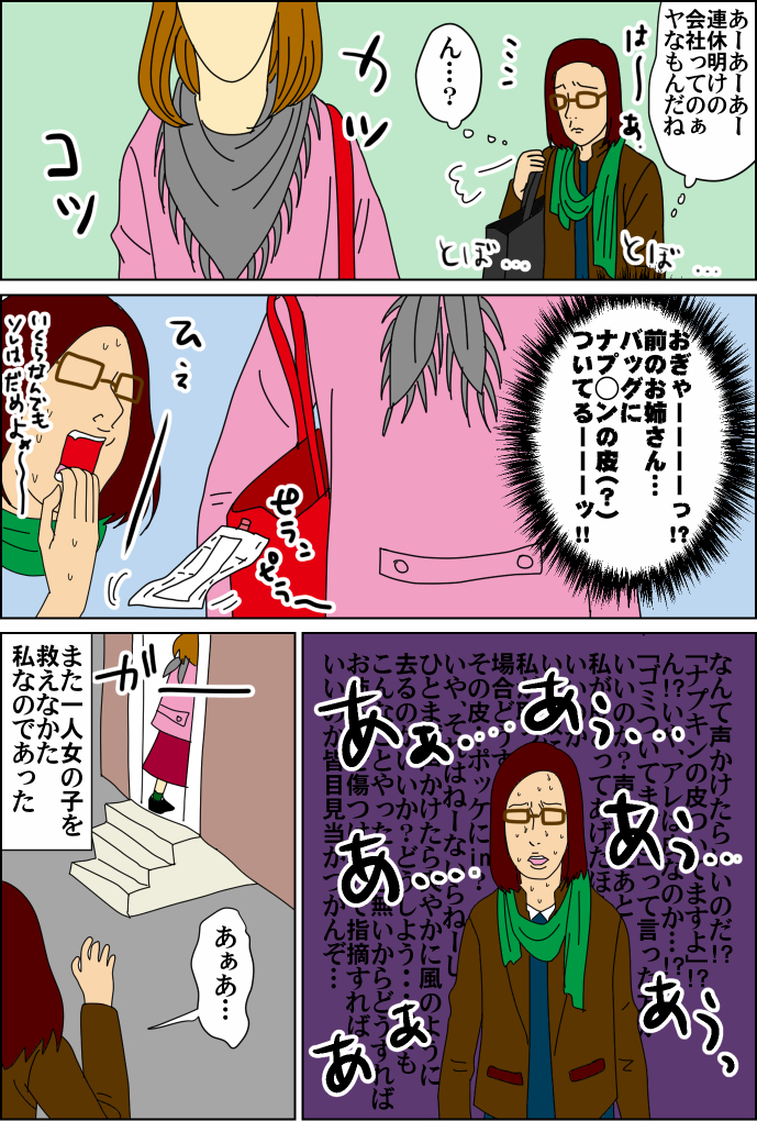 前回、スカートをパンツの中に巻き込んでパンツ丸見えてる女の子を救えなかった私・・・。