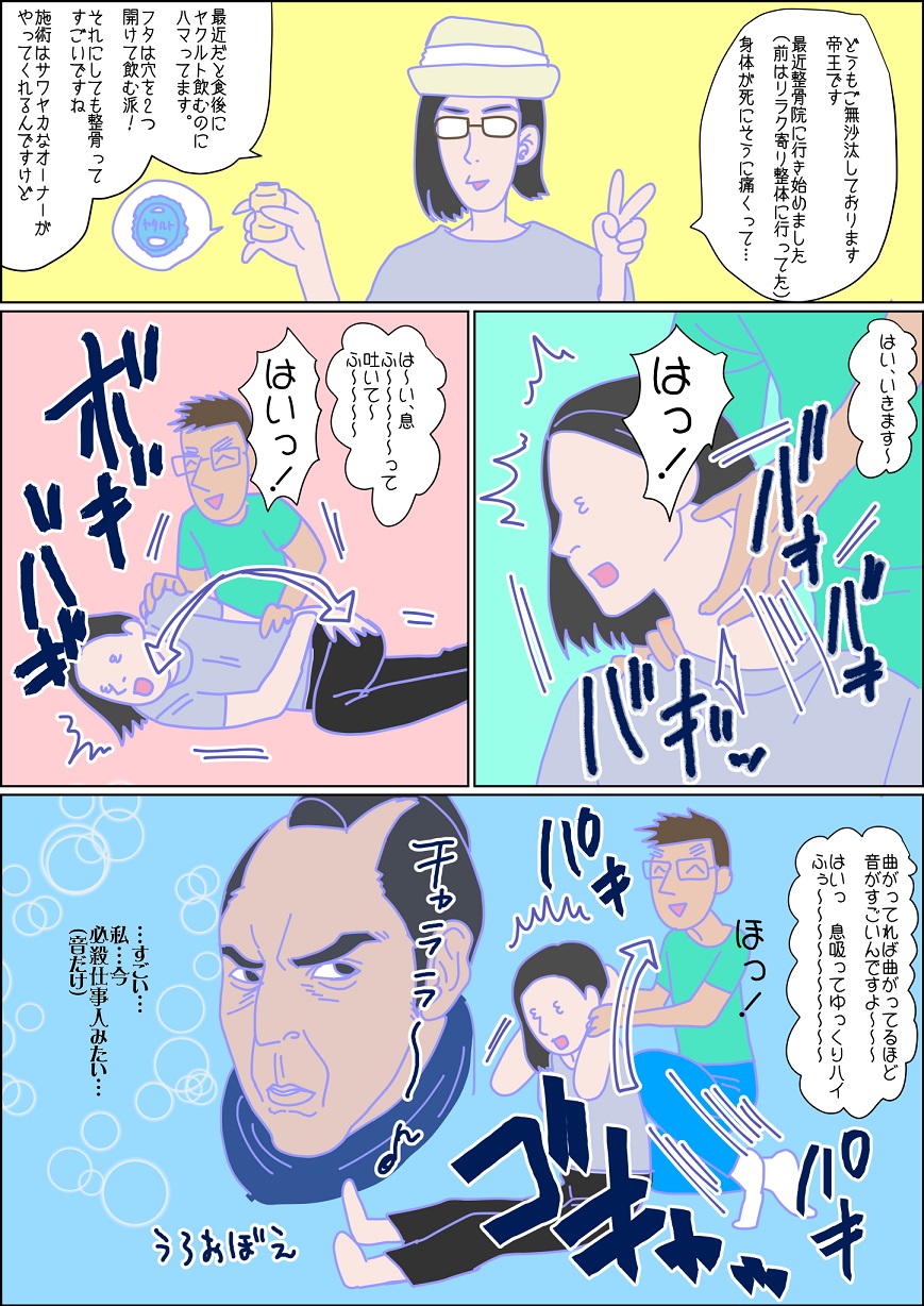 背骨と首の骨と骨盤バキバキして身体真っ直ぐにして
