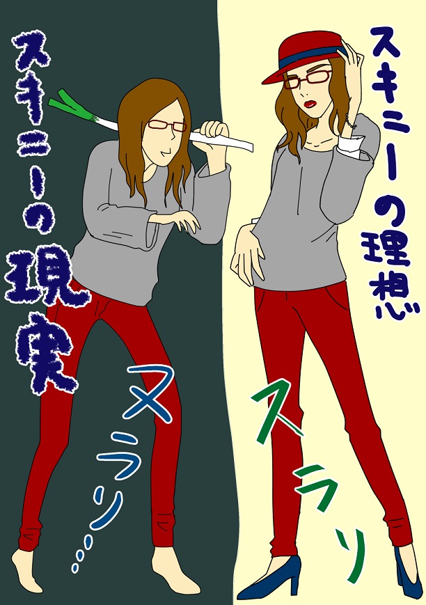 「いっちょスキニーパンツとか履いてオシャレ感を演出すっか!」